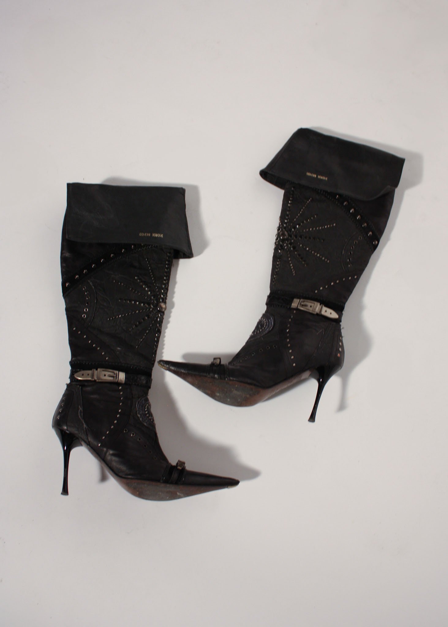 Vintage black El Dante stiletto boots with studded and embellished detailing for an effortless edge. A statement piece that elevates any look. Comes with the original box. Size 39.