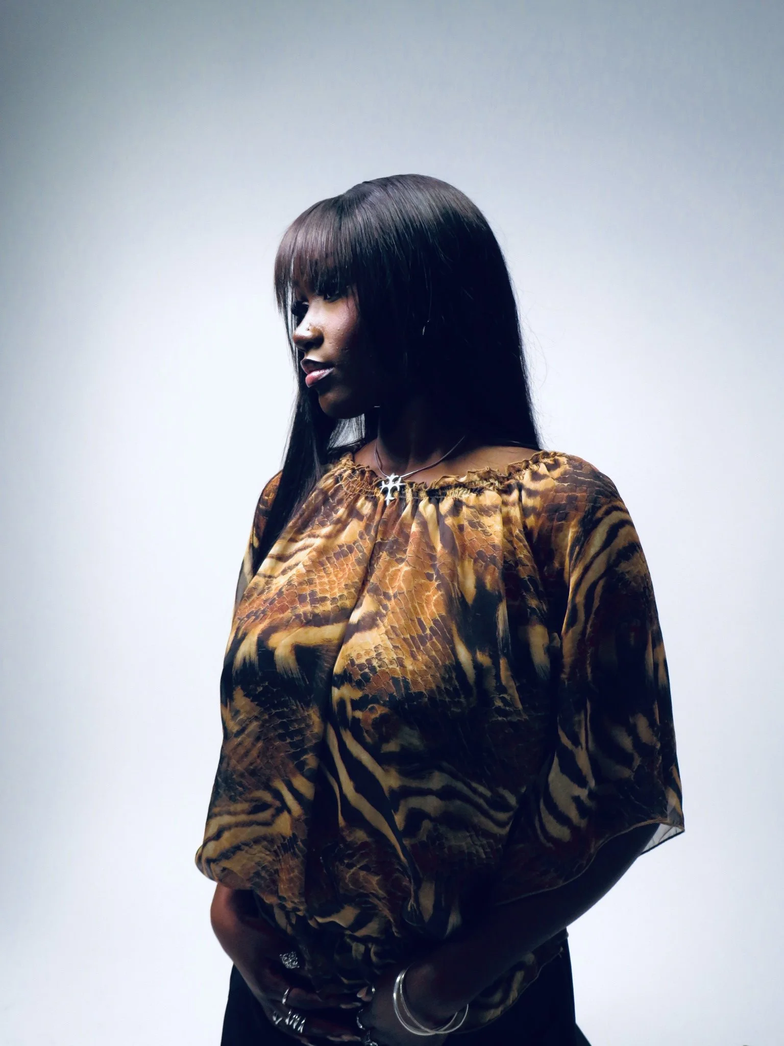 Vintage sheer animal print Bardot blouse with cinched detailing — the perfect 2000s piece. Flowy, flattering, and effortlessly sultry. Label reads size 36, fits a UK 8–10.