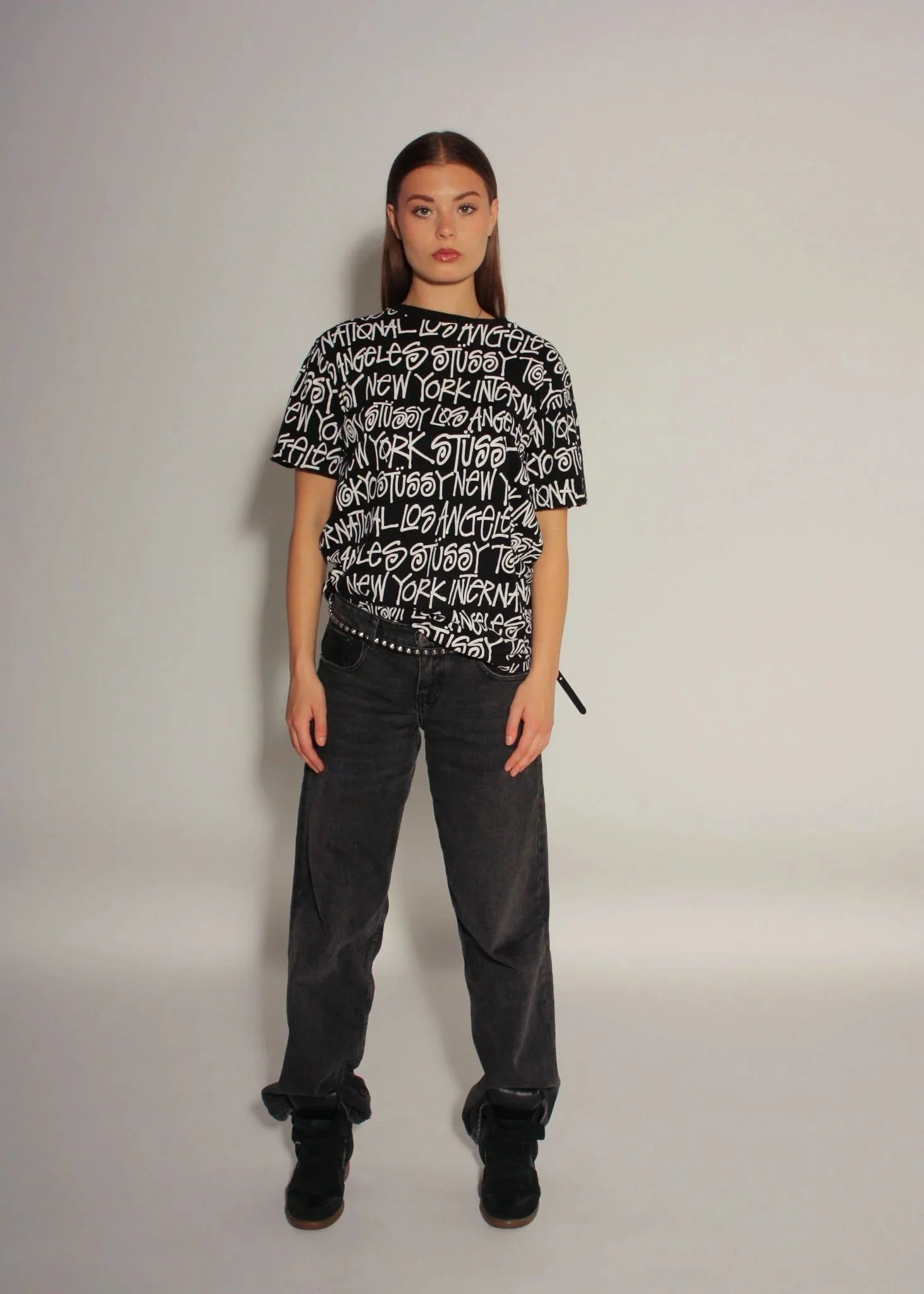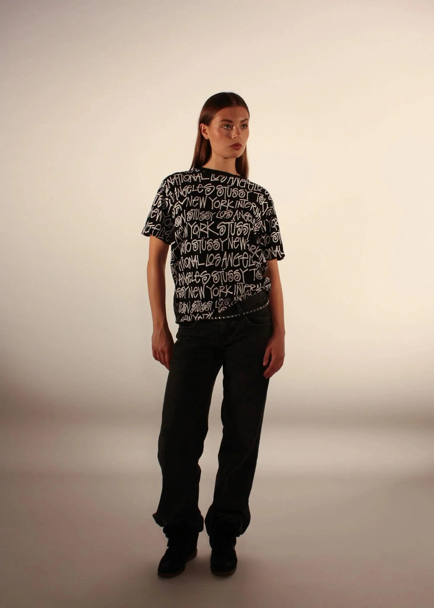 Preloved monogram Stüssy T-shirt in classic black and white — a standout statement piece to elevate any streetwear-inspired look. Marked size Small with a clean, timeless fit.